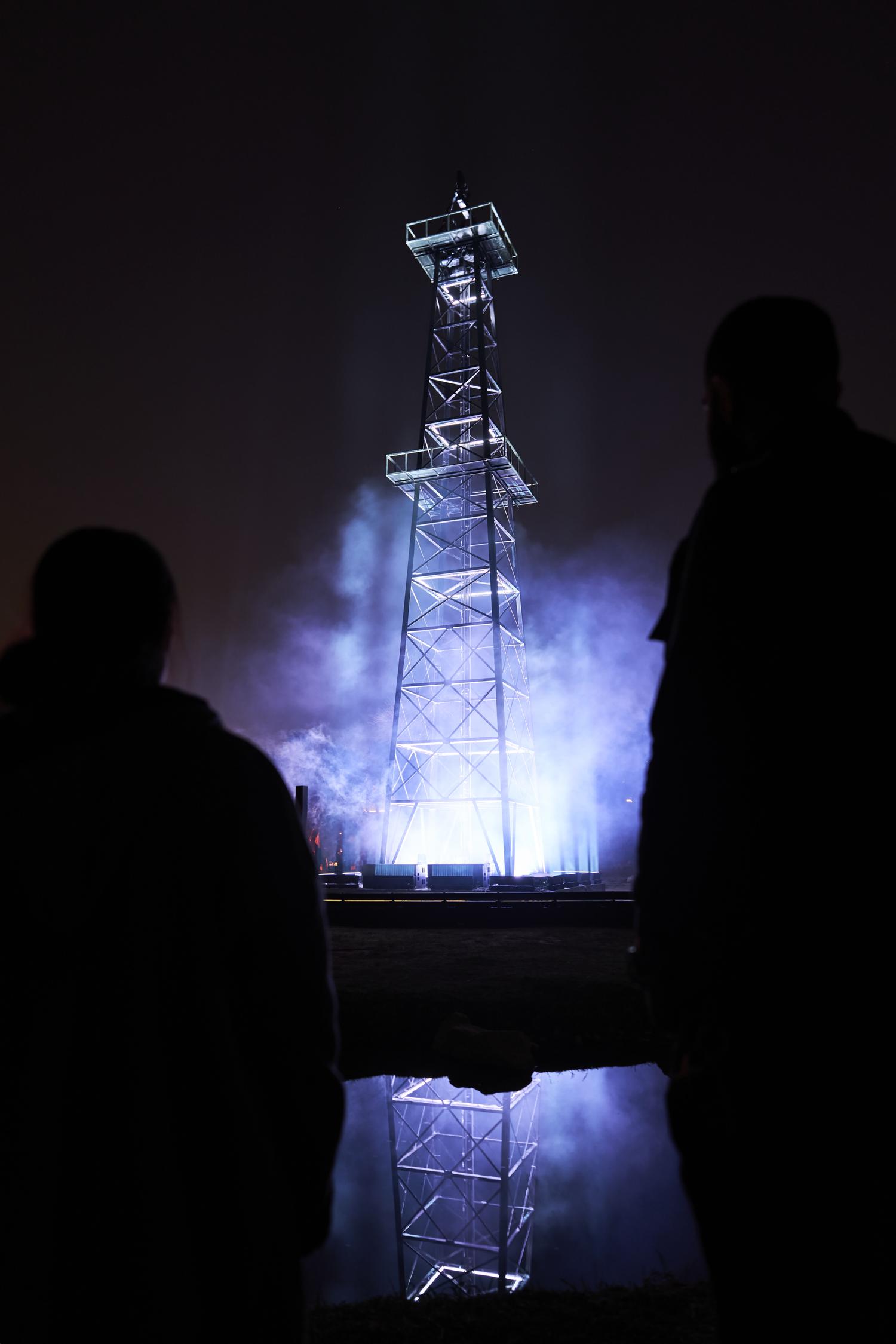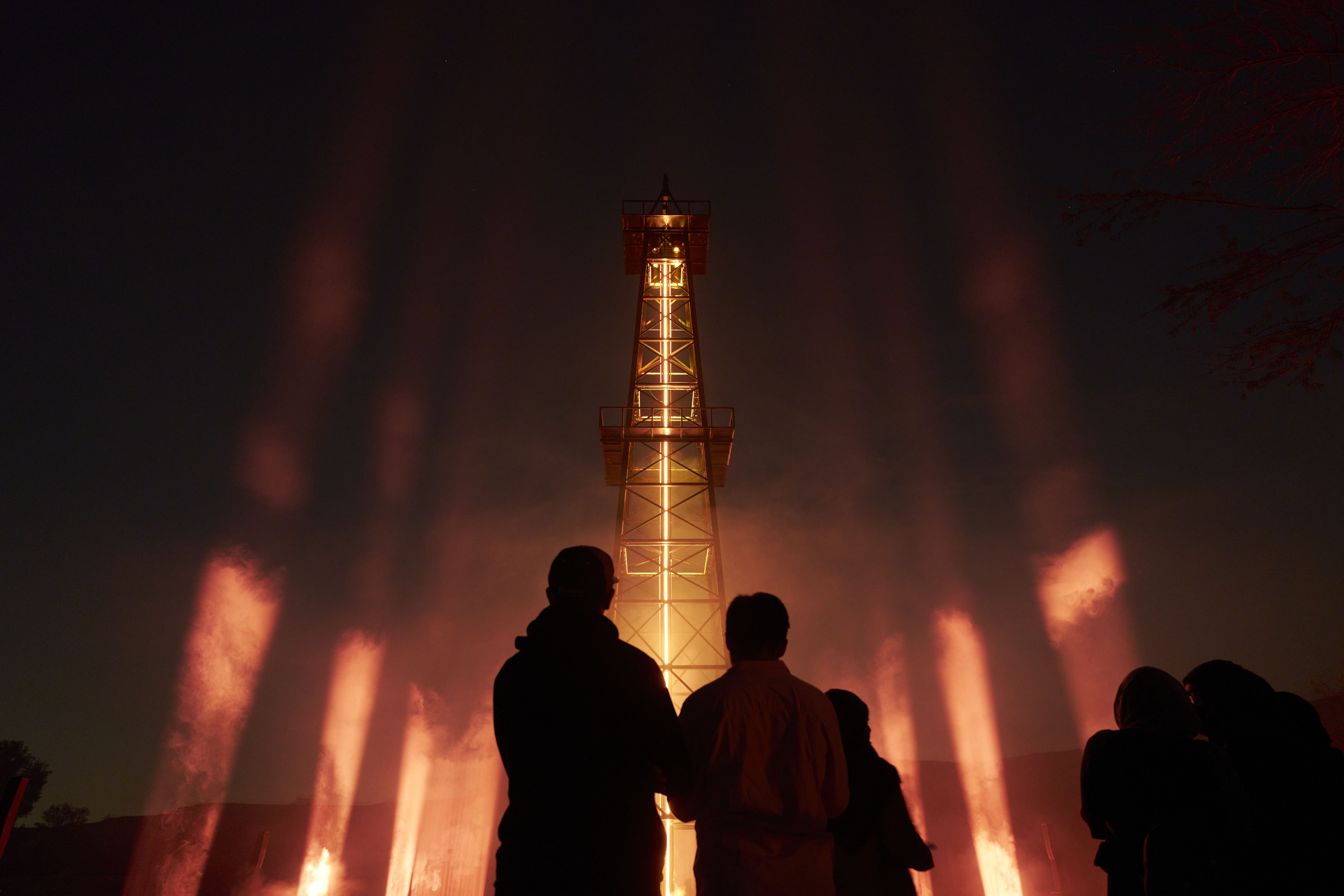 All Is Well is inspired by the iconography of mining shafts. It's no longer a question of extracting a material resource, but of bringing out a symbolic material: light. Here, it springs from the ground like a mysterious flow.