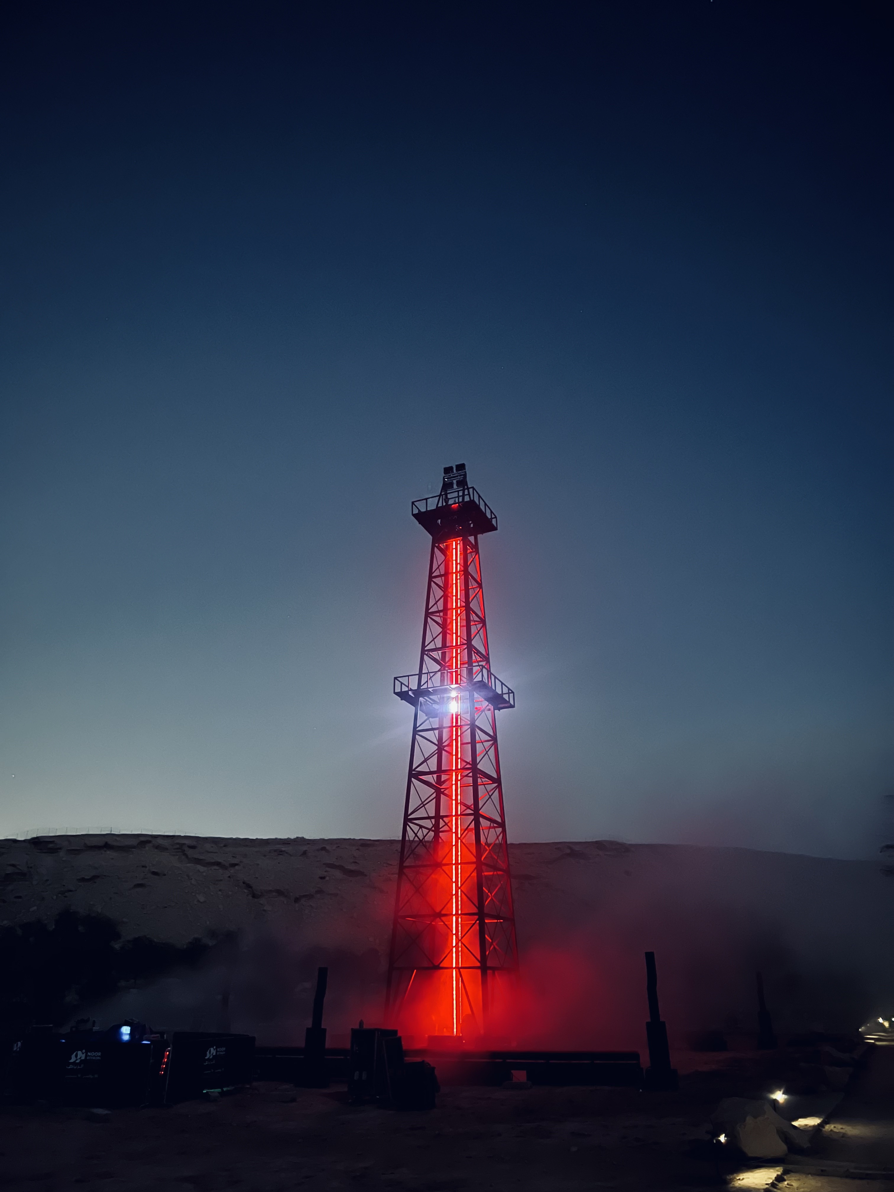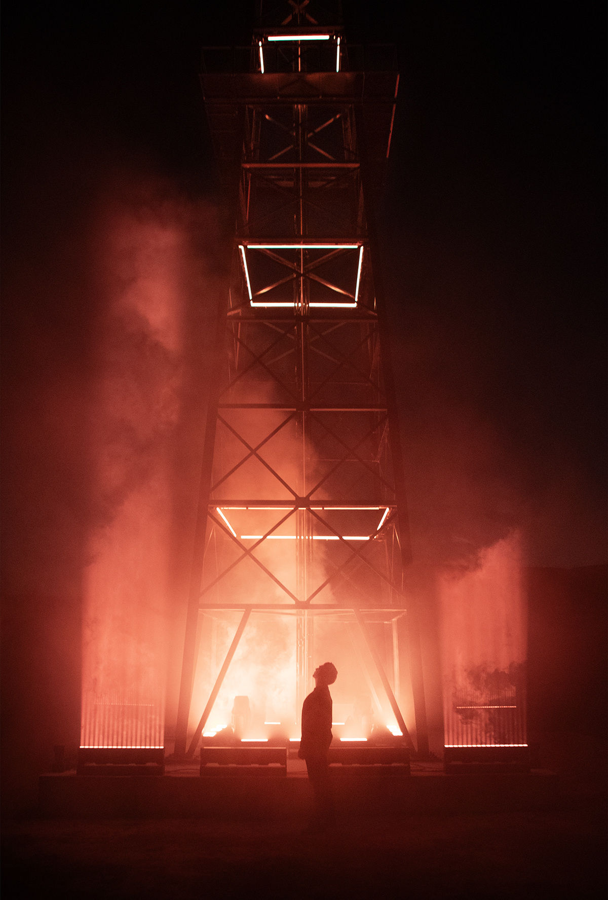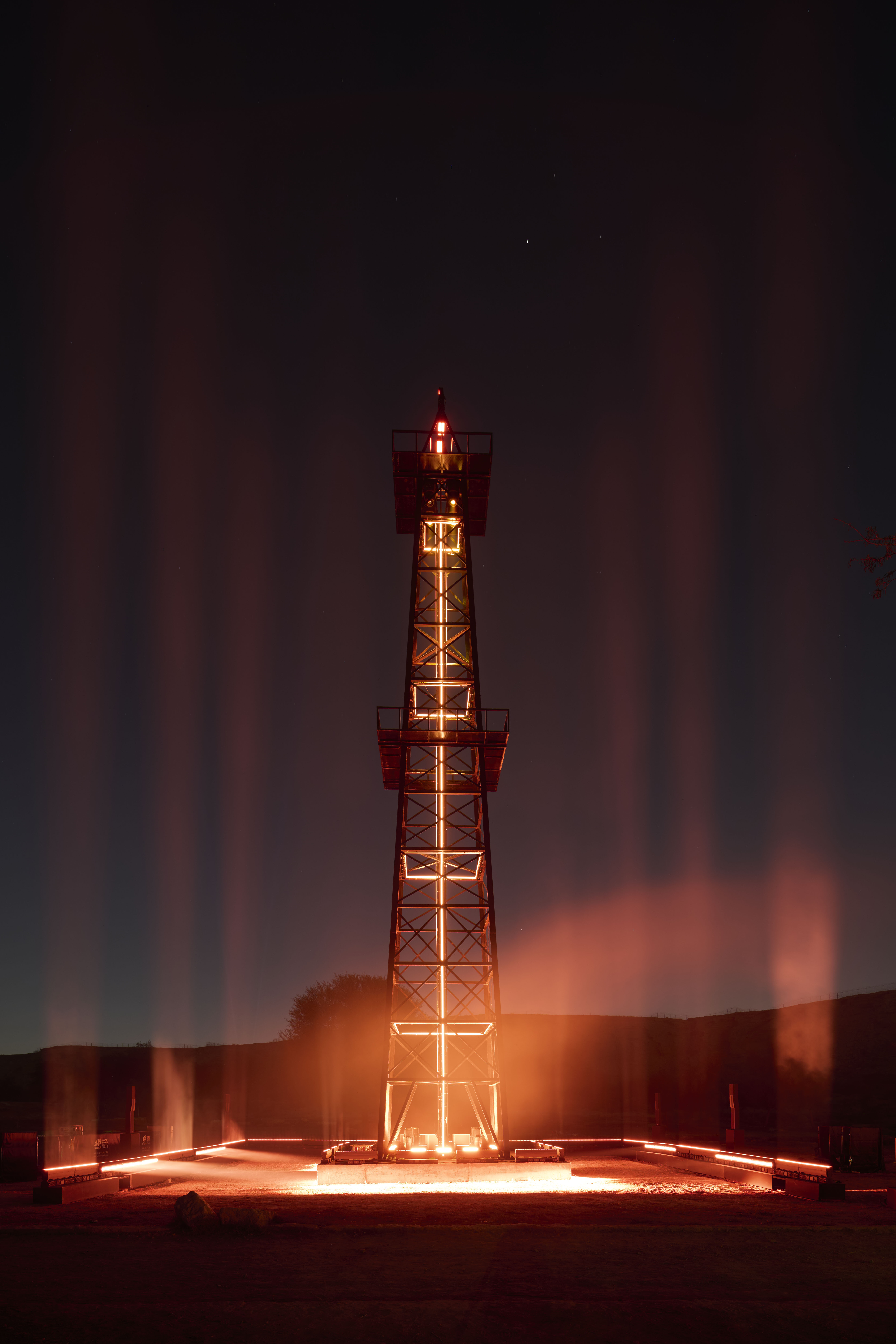 All Is Well is inspired by the iconography of mining shafts. It's no longer a question of extracting a material resource, but of bringing out a symbolic material: light. Here, it springs from the ground like a mysterious flow.