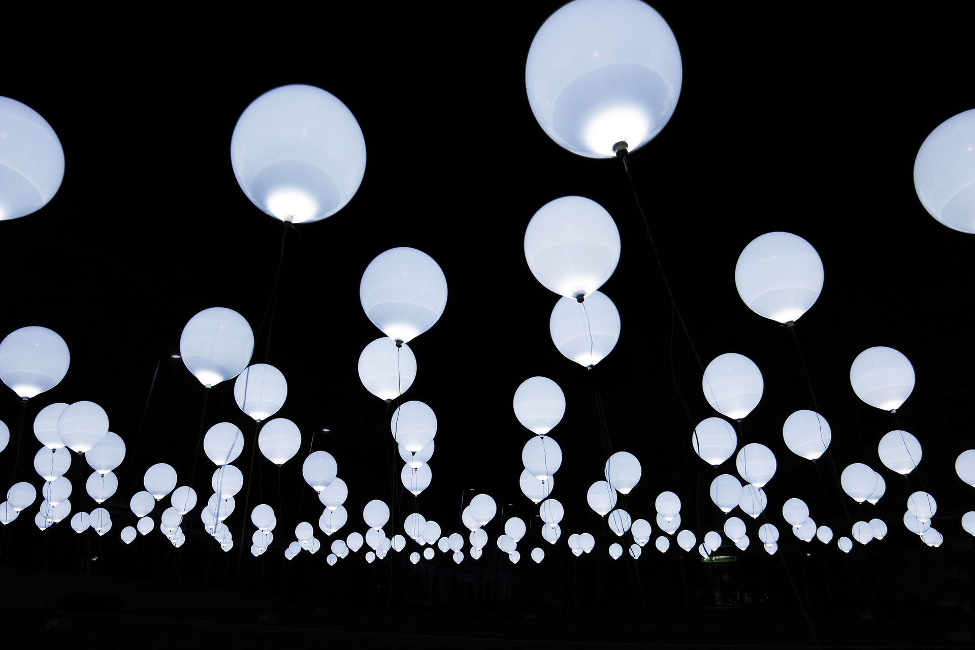 Cyclique is a light and sound installation composed of a matrix of 256 balloons inflated with helium and equipped with LED lights. The floating 700 square-meter structure changes its shape as the wind flows through the balloons, immersing viewers in an artificial synaesthetic landscape where the soundtrack becomes the orchestra conductor. In collaboration with artist Maxime Houot (Collectif Coin), Bruno Ribeiro channels his creativity into the art of blending sound and light compositions, orchestrating a delicate dialogue between movement, light, and space.
