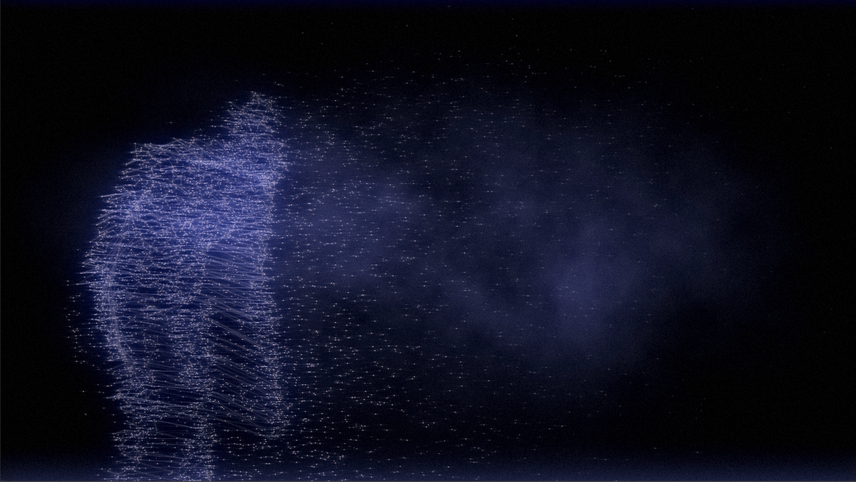 The artist mixes video footage of a dancer with computer-generated sounds and graphics, resulting in a performance designed as a luminous and synaesthetic choreography. This digital doppelganger of the dancer is no longer a representation of a human body, but an abstract kinetic sculpture of her own feelings and fears, which eventually dissolve into the void.