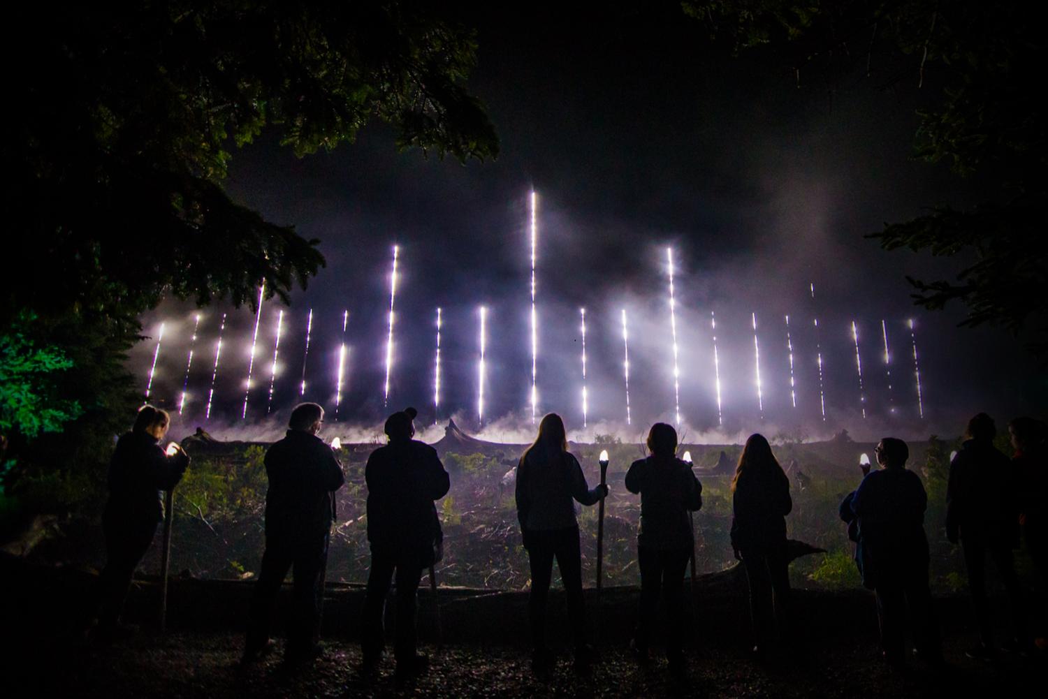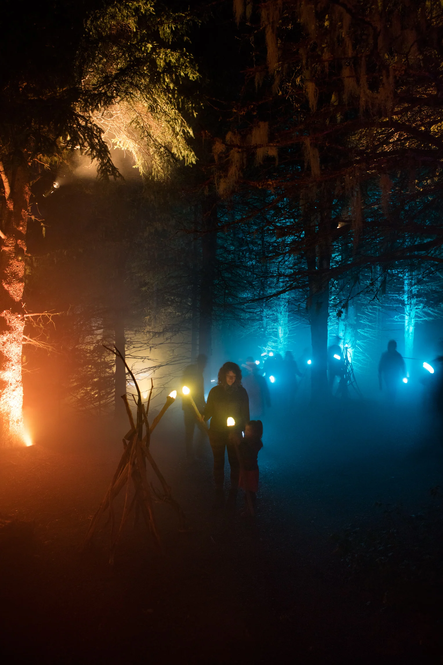 Dès leur arrivée, les visiteurs se voient remettre un bâton illuminé et confier une quête, celle d’accompagner une étoile et de la retourner au ciel.